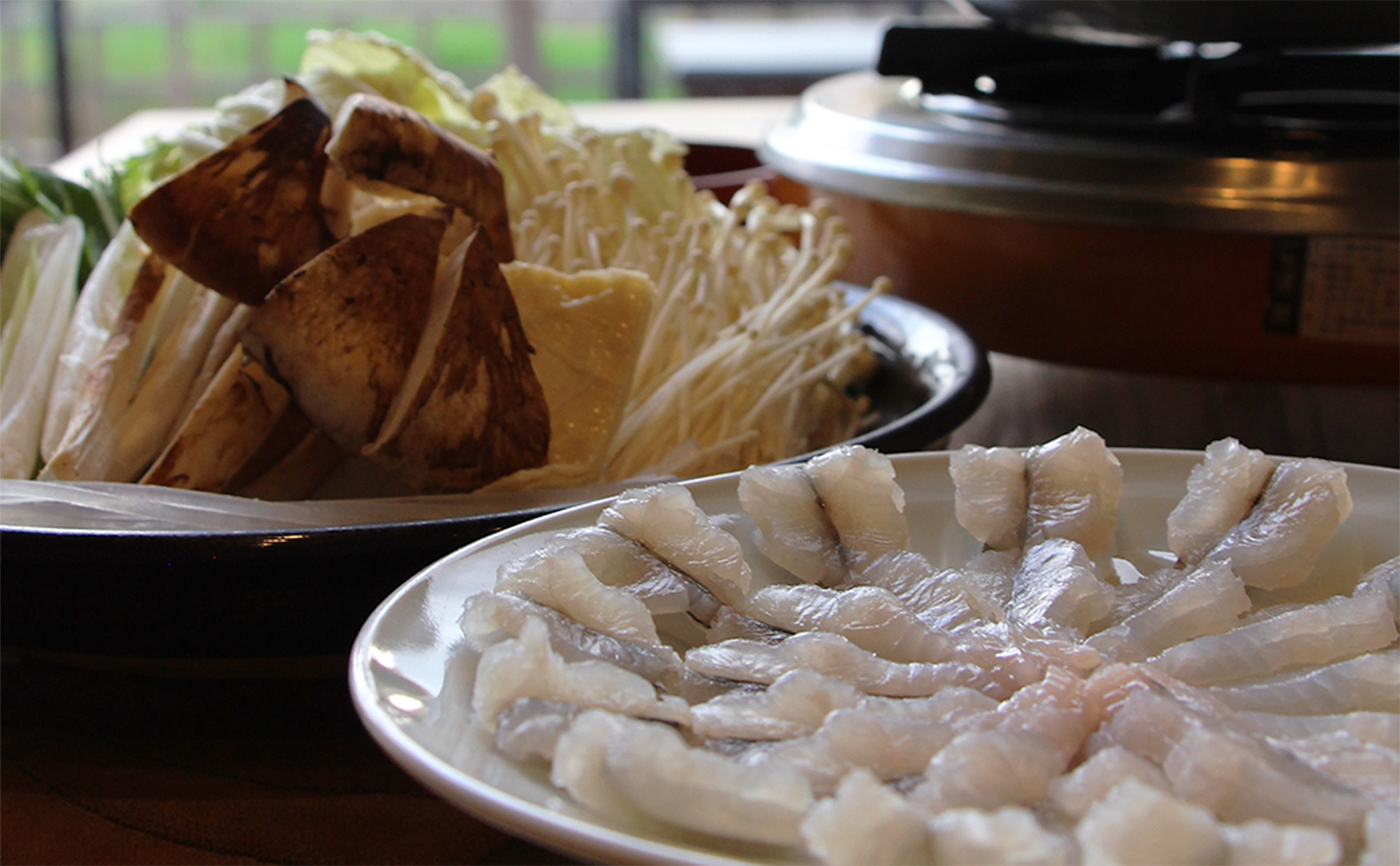 その日に仕入れた新鮮な鱧(はも)を、多から特製のお出汁にさっと通してお召し上がりください。